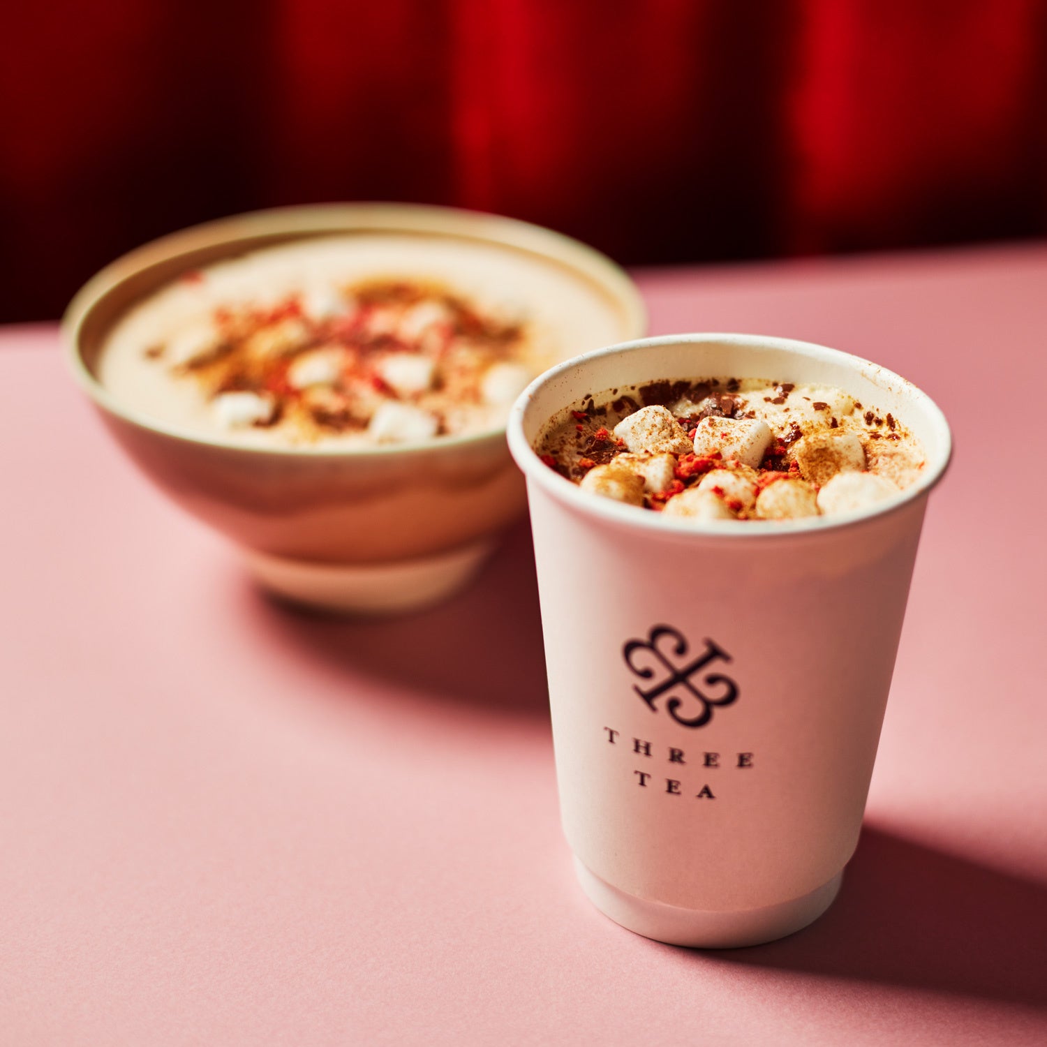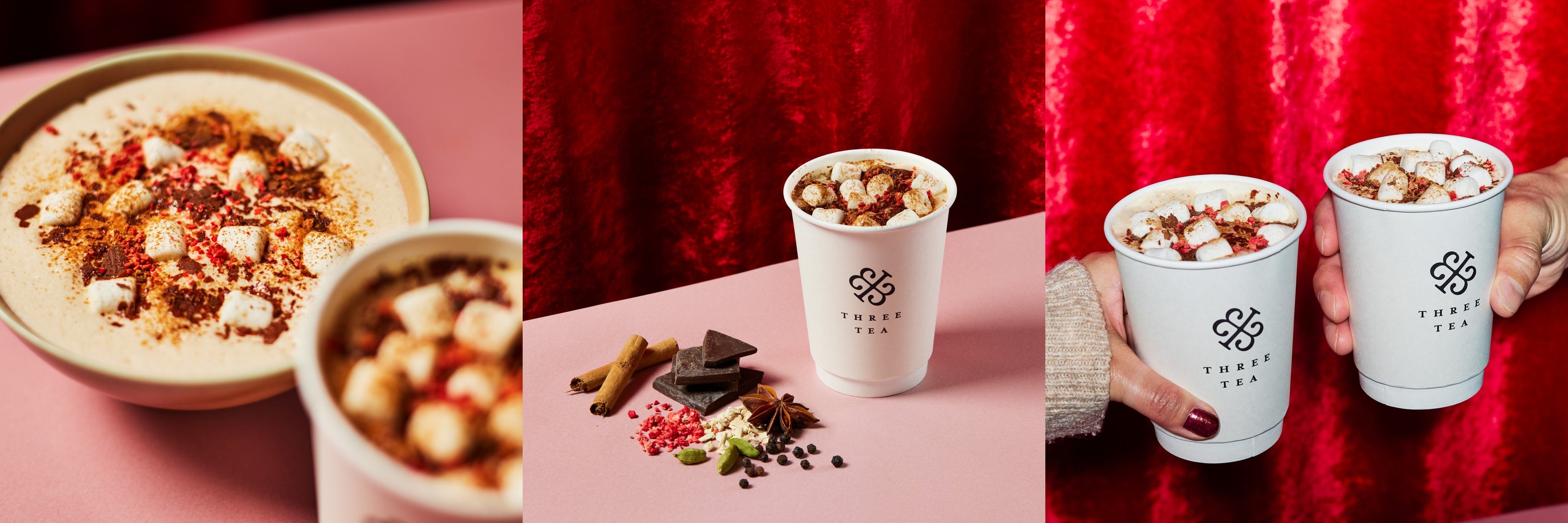 冬の寒さを癒す贅沢なひと時を、甘いスイーツとドリンクと一緒にTHREE TEA CAFEでお過ごしください。