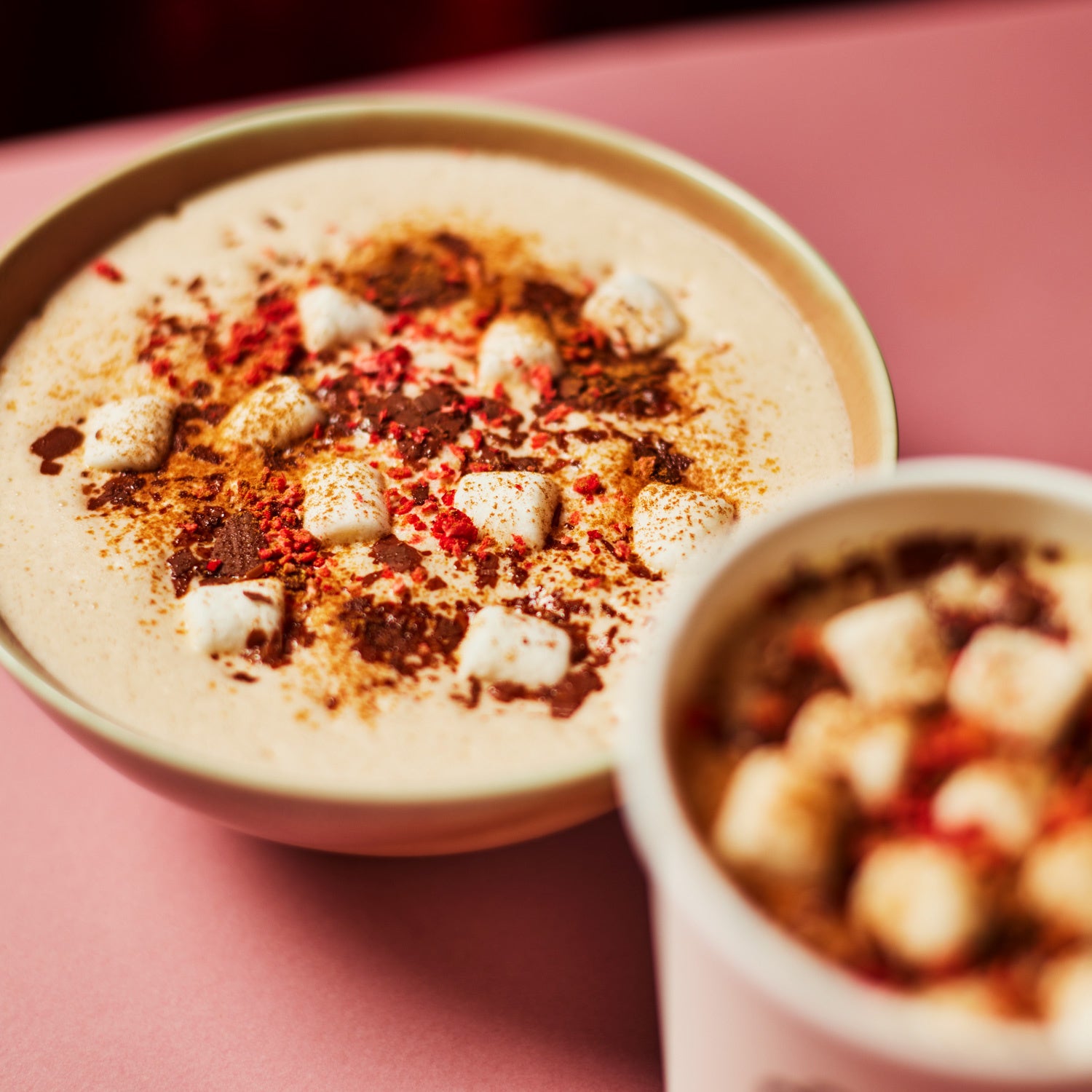 また、これからのバレンタインシーズンに合わせて新ドリンク「ショコラチャイ」も新発売。7種類のスパイスをブレンドしたカフェで人気のアッサムチャイにチョコレートを合わせ、マシュマロとドライストロベリーをトッピングしています。複雑に重なりあう奥深いスパイスの香りとチョコレートのまろやかな甘みが織りなす、身も心もほっこりとあたたまるスイーツドリンクです。