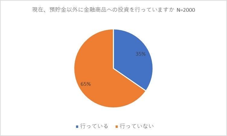 まず、回答者全員に「現在、預貯金以外に投資を行っていますか」と質問しました。「行っている」と回答したのが35パーセント、「行っていない」との回答が65パーセントでした。
