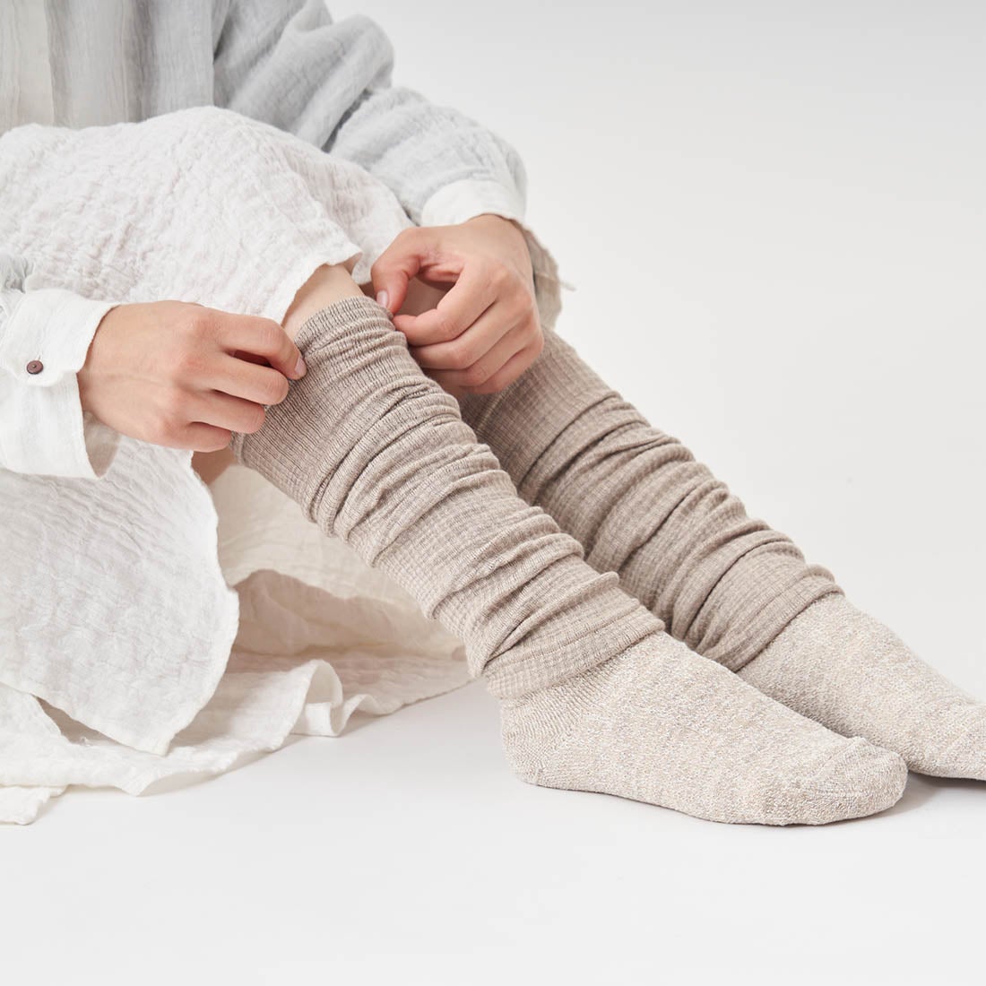 お風呂で身体をあたためた後に、冷えやすい脚を靴下の重ね履きで、やさしくぬくめるセット。