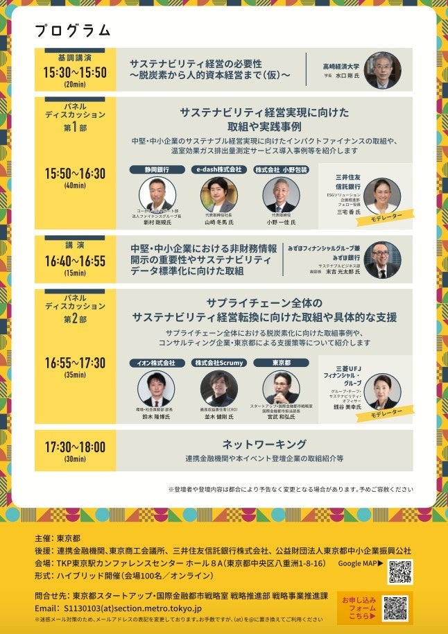 都内の中堅・中小企業がサステナビリティ経営を実践していくために東京都が金融機関と連携し取組事例や、行政・民間によるサポートなどについて学べるセミナーを開催!