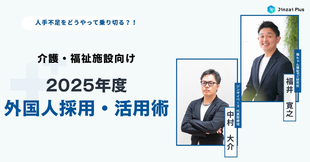 株式会社ジンザイベース(住所:東京都千代田区、代表取締役:中村大介)は、YouTubeチャンネル「福祉の福ちゃん」(運営:株式会社福ちゃん福祉Biz研究所、代表取締役:福井寛之)と合同で介護施設を対象とした「外国人材採用・活用術」をテーマに無料WEBセミナーを3月26日(水)・28日(金)に実施いたします。(申し込みフォーム:https://www.jinzaiplus.jp/webinar/5)