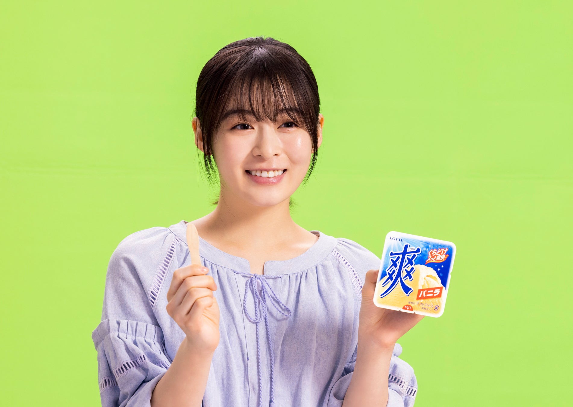 TVCMキャラクターでもある森七菜さんを引き続き起用した今回の新WEB動画。真夏生まれで夏が大好きと公言する森さんが夏到来をリアルに喜ぶシーンから始まります。そして、微細氷が織りなす、“くちどけスッと爽快”な美味しさが特徴の「爽」を食べてリフレッシュする様子が描かれています。動画を見ている側も無性に食べたくなってしまう、「うみゃ〜い‥!」と幸せそうに「爽」を味わう森さんの表情は必見です。