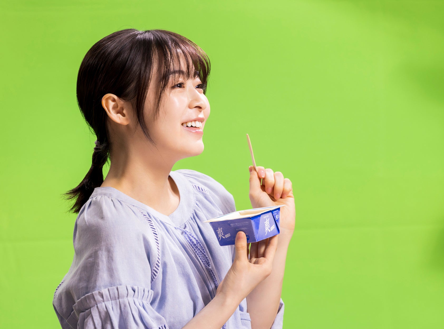 森さん: 私は撮影の後に、「爽」を食べるのが大好きです。(撮影をがんばった)自分へのとっておきのご褒美として、撮影後に「爽」を味わっています。