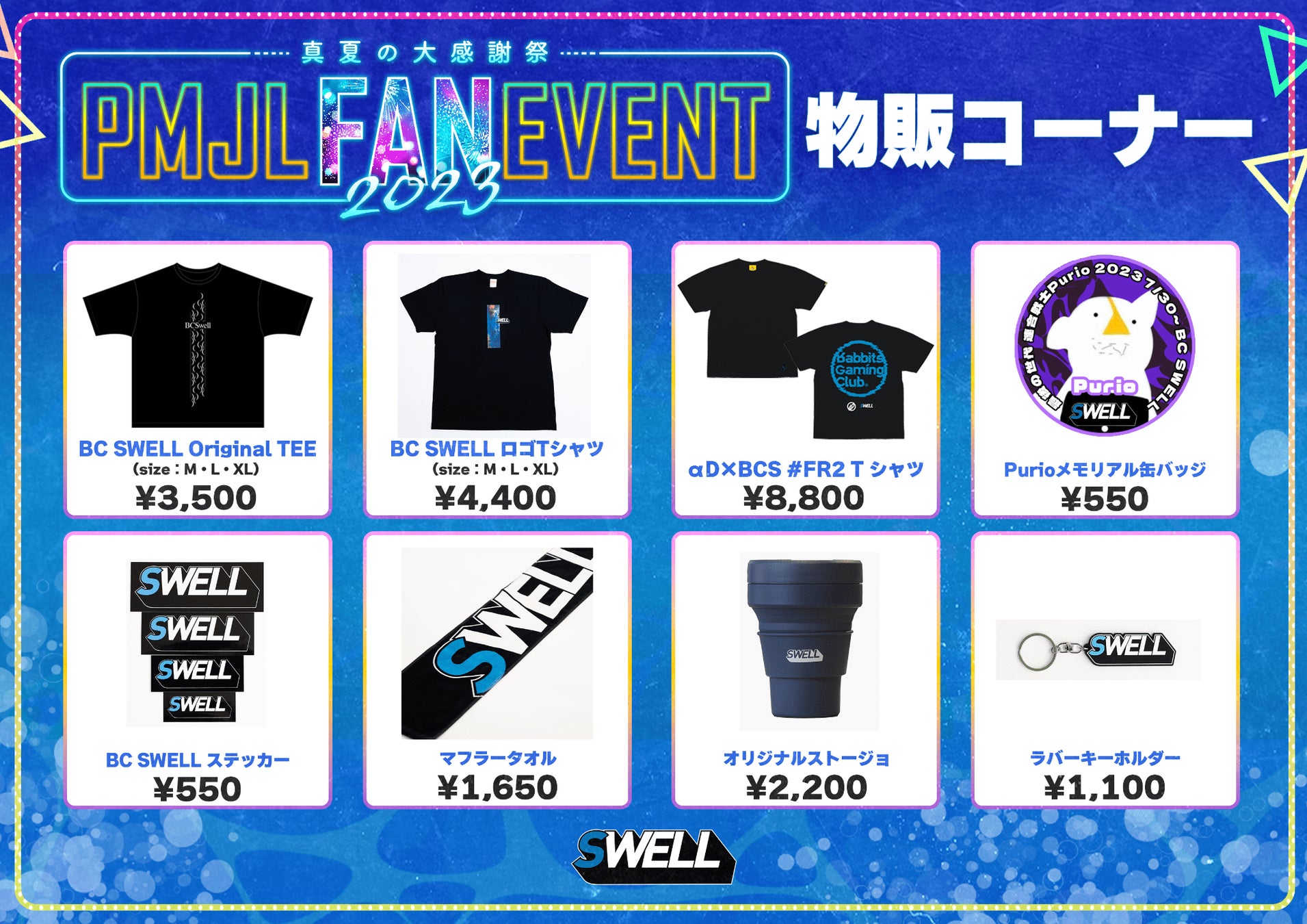 プロeスポーツチーム 「BC SWELL」が2023年8月19日(土)「PMJL FAN EVENT 2023 真夏の大感謝祭」にブース出展