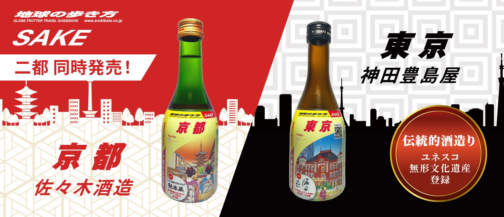 日本酒の企画や販売を行う日本テクノロジーソリューション株式会社は、株式会社地球の歩き方(本社:東京都品川区、代表取締役社長:新井 邦弘)が出版する「地球の歩き方」国内版と連動した「地球の歩き方オリジナル日本酒」シリーズを展開しています。7月に発売した第一弾の『広島』に続いて10月には第二弾の『群馬』『茨城』『栃木』を発売しました。今回は第三弾として、『京都』『東京』のコラボラベル日本酒を発売いたします。