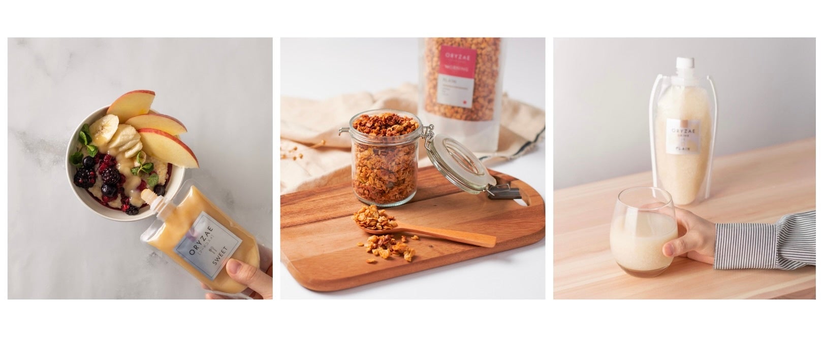 料理にかけるだけの発酵調味料「ORYZAE SAUCE」、米麹100%甘酒「ORYZAE AMAZAKE」、米麹だけで甘みをつけた砂糖不使用のグラノーラ「ORYZAE GRANOLA」を展開しています。