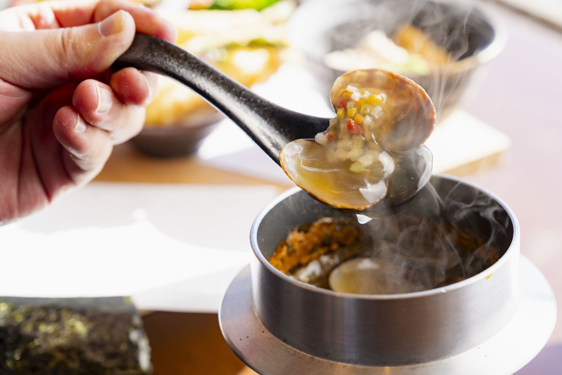 釜で温めてから、香ばしいおこげにかけてご堪能ください。