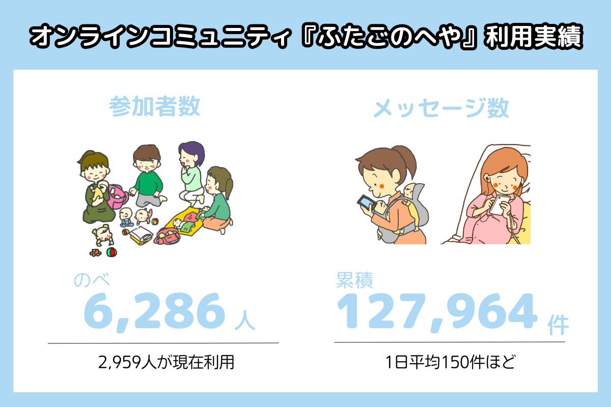 匿名で参加できる『ふたごのへや』には、多胎ママにとっての有益な情報や、多胎ママならではの悩みと共感の言葉が、月に4,000件を越えるメッセージとして飛び交っており、多胎ママ同士が励まし合い・支え合うコミュニティとなっています。