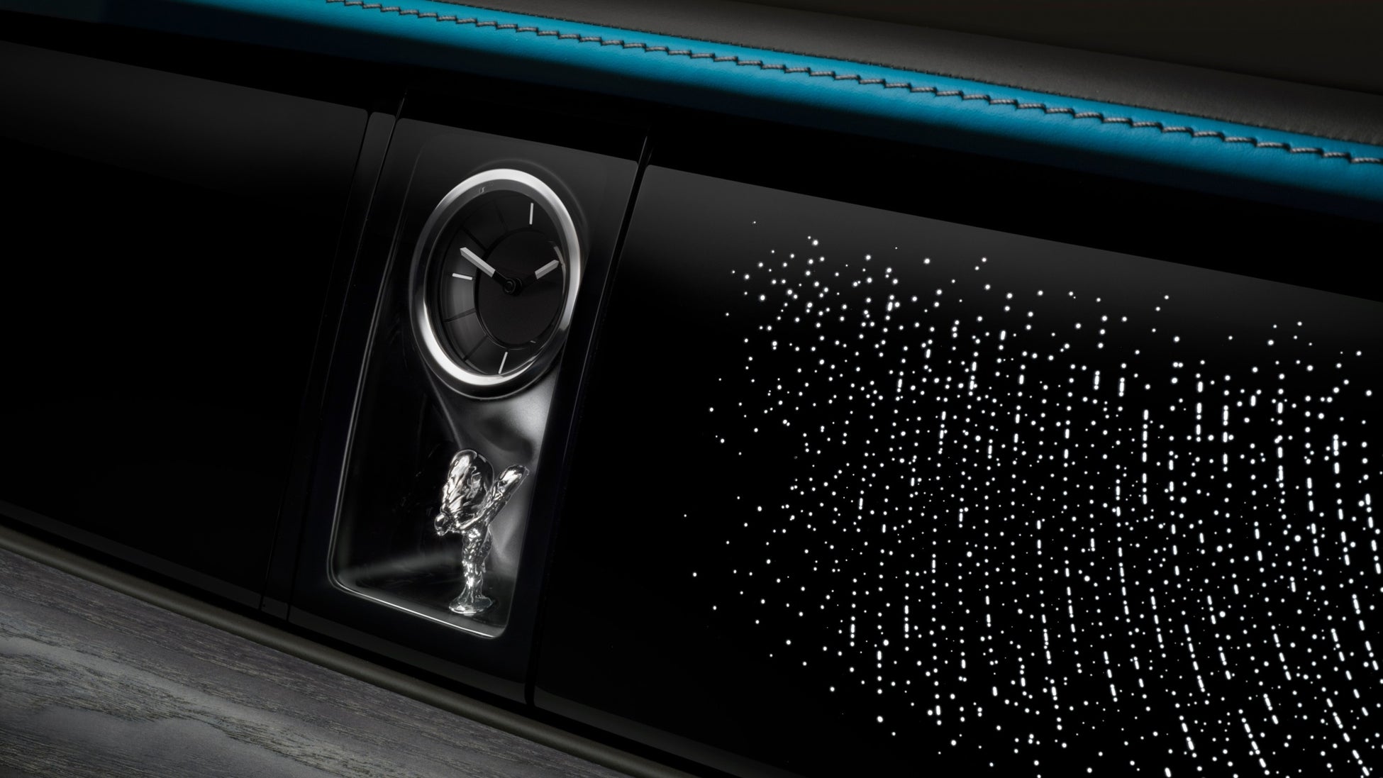 この精巧なディテールに加えて、助手席側の全幅に広がるのは、2020年にゴーストで初めて登場した、先進的な職人技によるイルミネーテッド・フェイシアです。ゴースト・シリーズ IIでは、新しいイルミネーテッド・フェイシアのデザインを星空からインスピレーションを得て、タイムラプスの天体写真を彷彿とさせるデザインで夜空の動きを捉えています。お客様は、ロールス・ロイスのビスポーク・デザイナーとともに、オリジナルのイルミネーテッド・フェイシアのモチーフをつくりだすことも可能です。