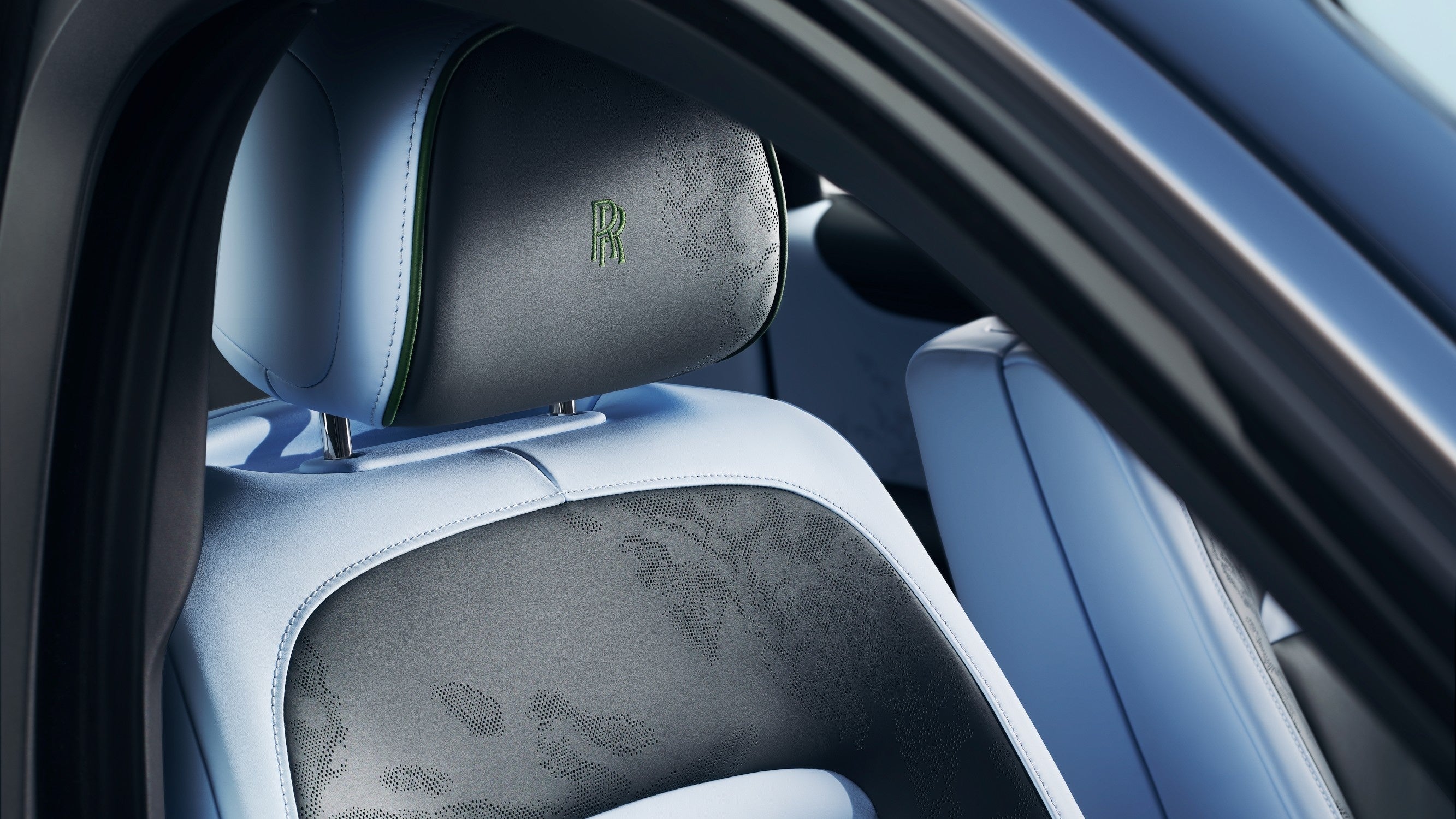 このほか、革新的な現代的な工芸技術「プレースド・パーフォレーション(Placed Perforation)」も選択可能です。これは、シート・レザーに小さな穴を開けてユニークなアートワークを施す技法で、パーフォレーションの大きさを変化させることで奥行きを生み、緻密で立体的なグラフィックを作り上げます。最初の模様は、グッドウッドにあるホーム・オブ・ロールス・ロイスの上空で変化する雲の形と影からインスピレーションを得てデザインされました。この模様は0.8ミリメートルと1.2ミリメートルのパーフォレーションで構成され、その数は最大107,000個にのぼり、そのひとつひとつを入念に確認することで絶対的な均一性が確保されます。