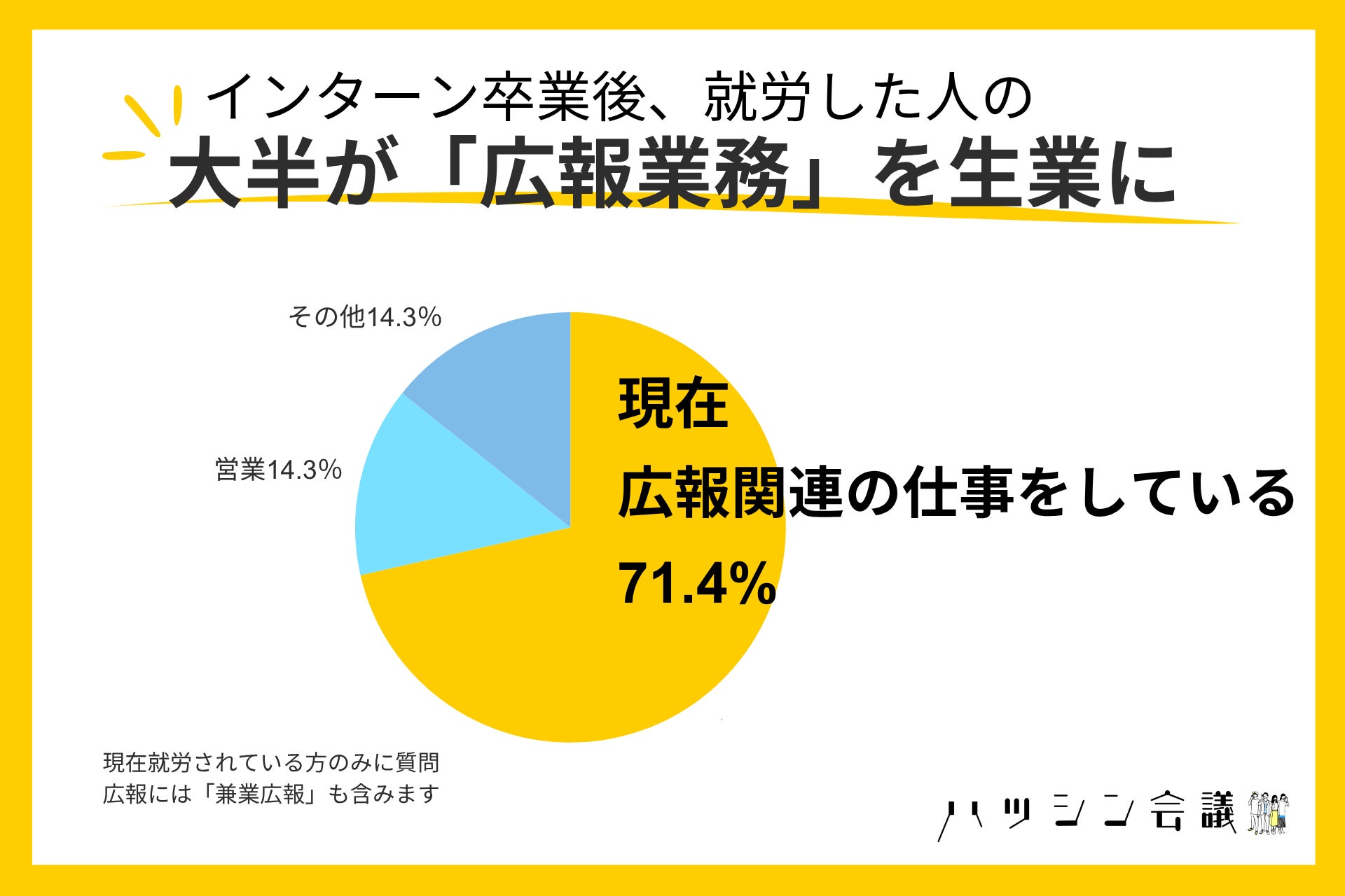ハッシン会議のインターン卒業後、現在就労している方がインターン活動をどう生かしているのかも調査しました。その結果、大半の方が「広報」に関する仕事に就いていることがわかりました。