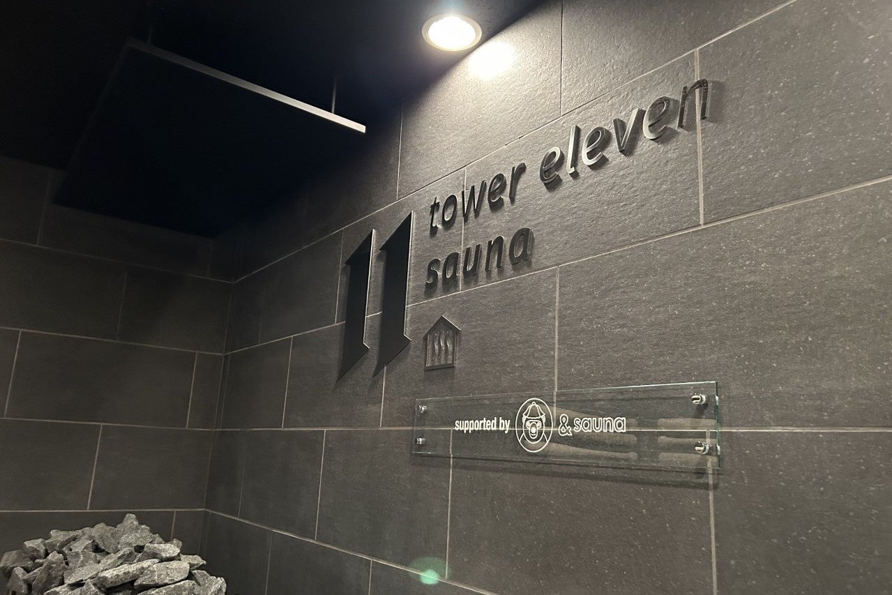TOWER 11内のサウナ室の中には「&sauna」のロゴも登場!YouTube動画配信やコラボグッズの発売も予定。