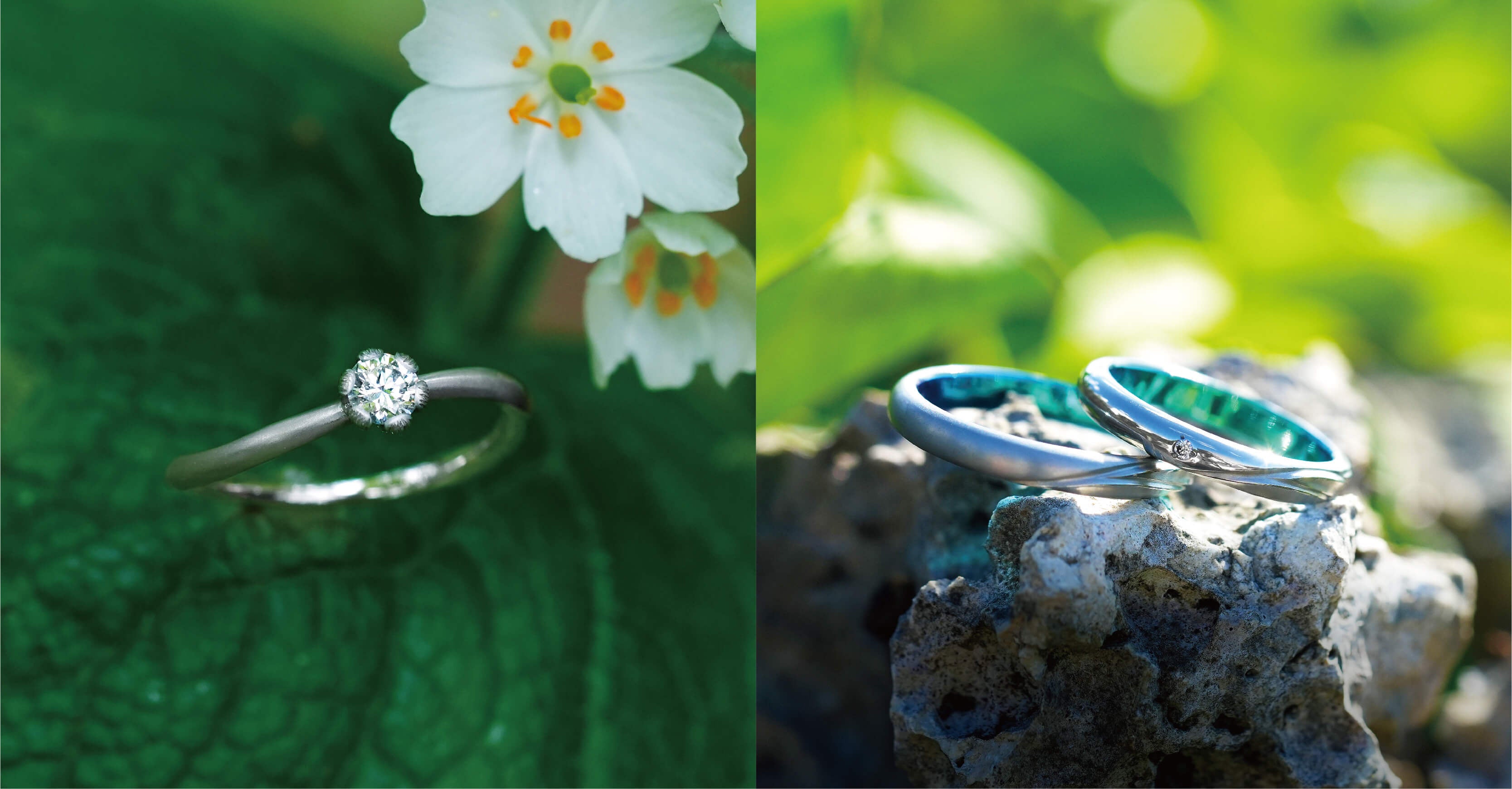 SORAが提案する多くのデザインは自然の造形にインスパイアされており、“2つとして同じ形が存在しない”自然の造形物に、人それぞれにも個性があることをコンセプトとして重ねています。また、都会で生活していく中で分離して捉えがちな自然について、人も自然の一部であるということへ常に想いを馳せられるよう、一生身につける結婚指輪のデザインに込めることを提案しています。