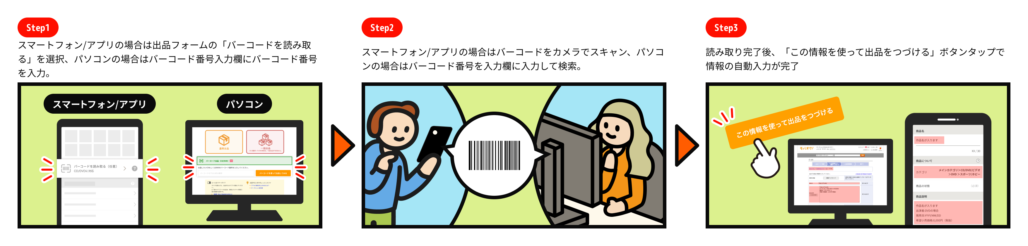 ※バーコード出品機能の内容、開始日等は変更になる可能性がございます