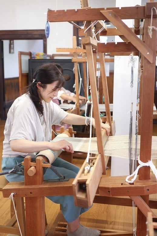 非日常的な趣のある雰囲気のなか、経験豊かな岡谷絹工房スタッフを講師に100%シルクを使った機織り、草木染めの体験を行います。