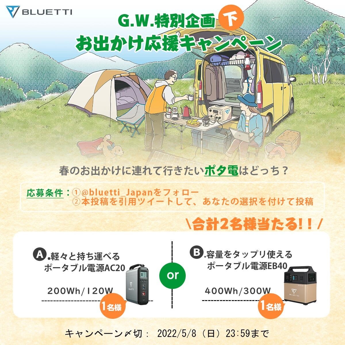 「BLUETTI G.W.お出かけ応援キャンペーン」実施中!抽選で合計3名様へポータブル電源をプレゼント