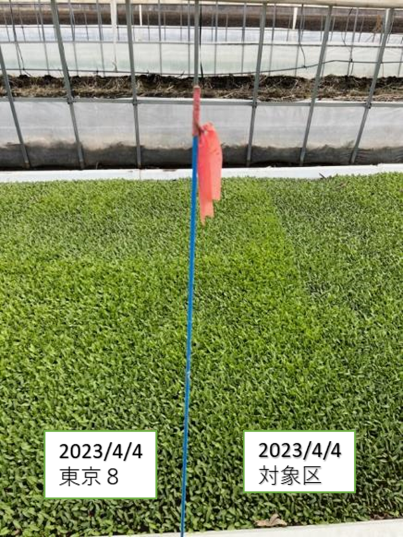 比較対象は、既存の資材で東京8の散布のみ片側に施用するだけに留めた実験方法としました。