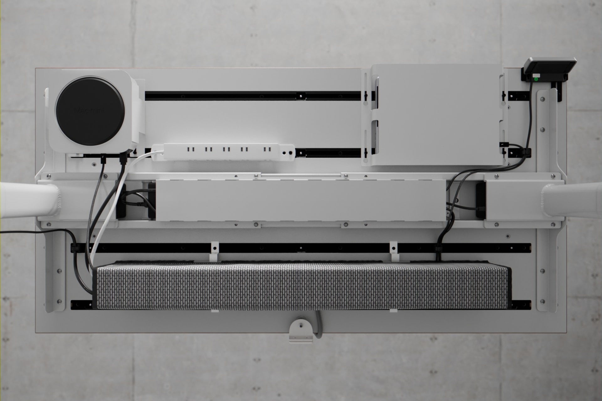 専用のモジュールは、デスクトップ/ラップトップPCやタブレットなどはもちろん、書類や小物、ヘッドフォン、ゲーム機などにも対応。ケーブルをきれいに配線できるアダプタやホルダーもあり、机の表も裏も利便性が高くスッキリした環境を構築できます。(特許取得済)
