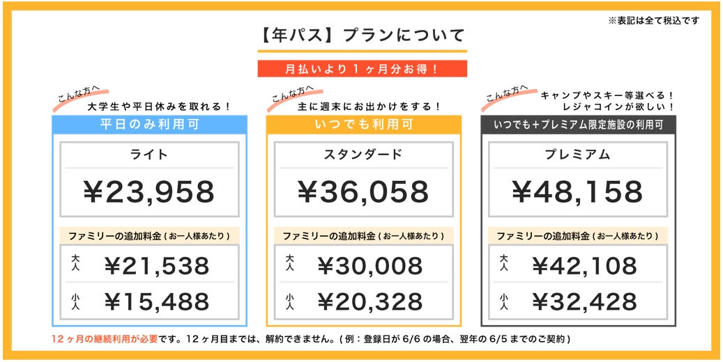 ※大人:18歳以上/ファミリー会員大人:13歳以上/ファミリー会員小人:12歳以下
