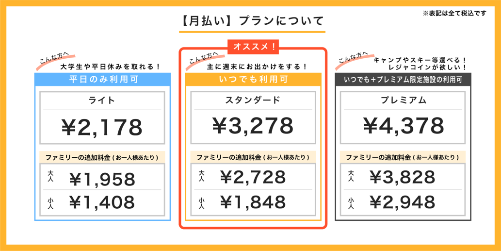 福利厚生で、ご家族含めてレジャパスが利用できます。