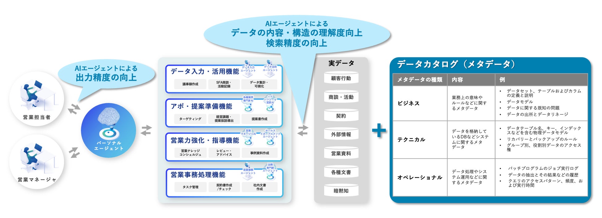 両社は、本パートナー契約を通じて、企業のAI活用とデータドリブン経営を強力に推進・支援し、お客さまの競争力強化に貢献していきます。また、企業の文化・風土や業務特性を踏まえ、データを起点とした意思決定やビジネス課題解決の迅速化を支援し、顧客ビジネスの変革や新規ビジネスの創出に貢献していきます。さらに、AIエージェントの出力精度向上に向けたビジネスメタデータの整備や活用高度化にも積極的に取り組み、データの新たな活用可能性を切り開いていきます。