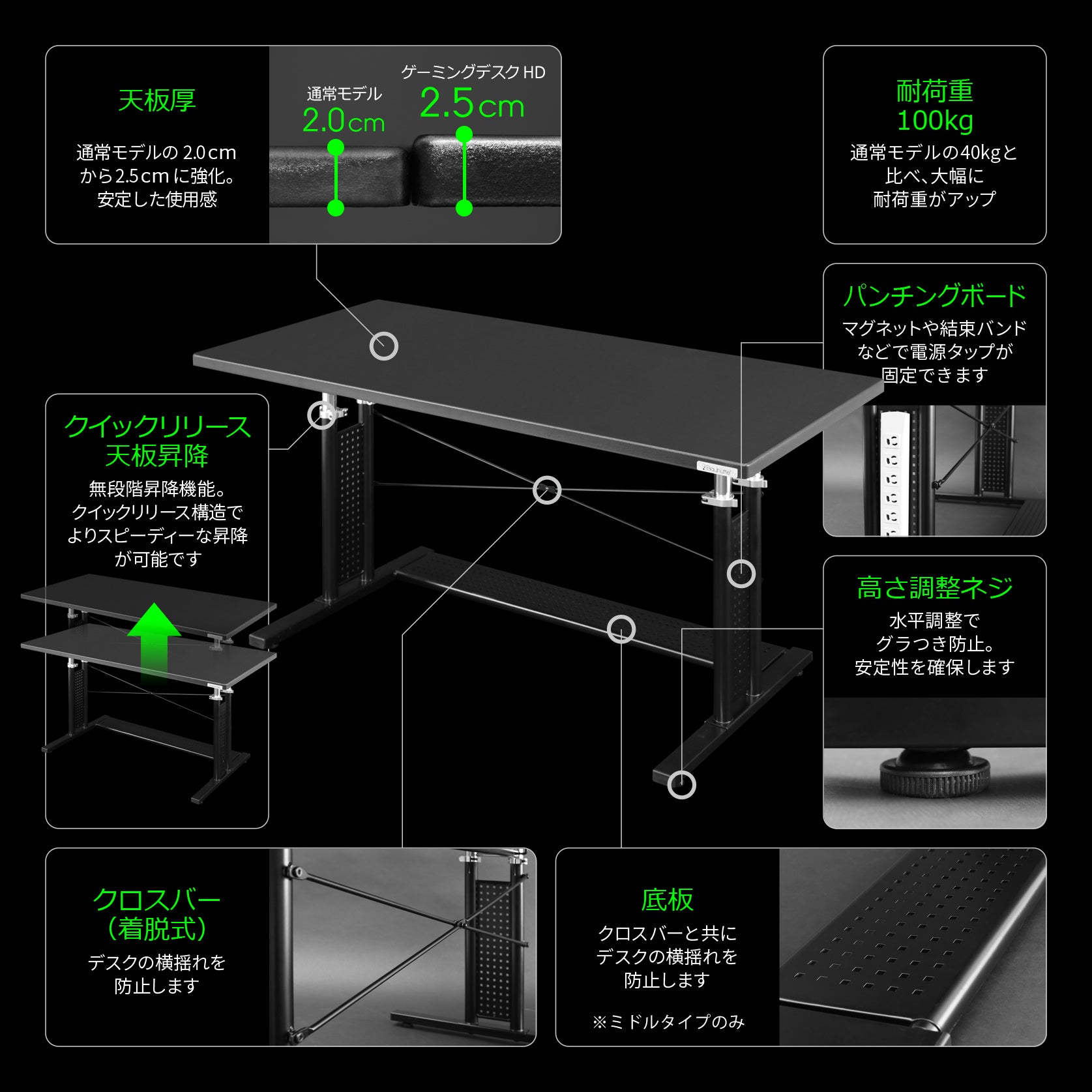 ゲーミングデスクHD BHD-1200HDM-BK、BHD-1000HDM-BK