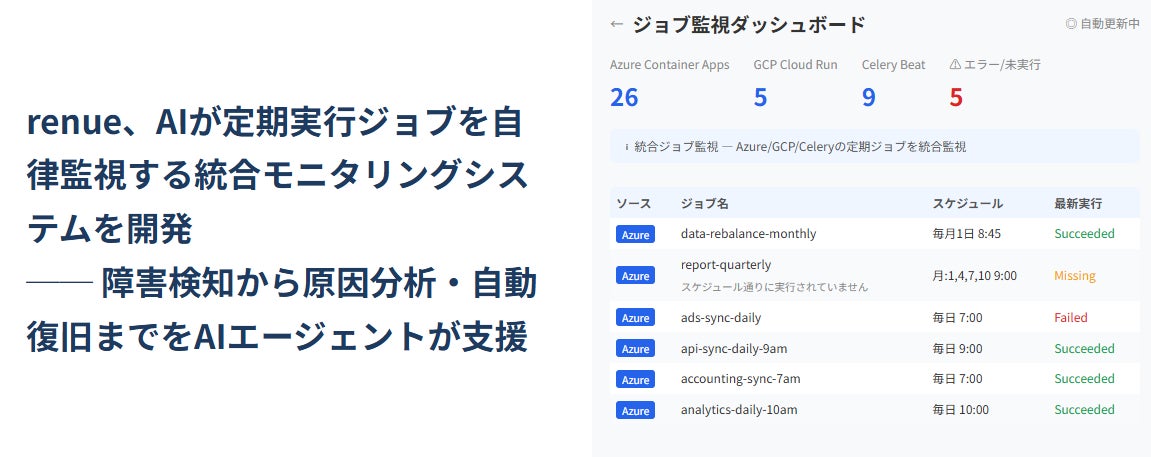 renue、生成AIが定期実行ジョブを自律監視する統合モニタリングシステムを開発