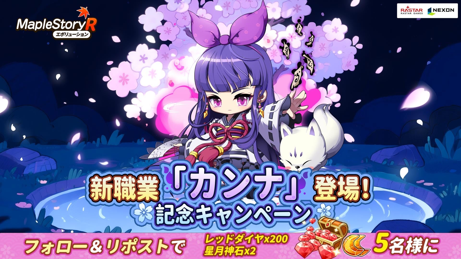 ネクソンの完全監修による『メイプルストーリーR』にて、職業カードシステムに新職業「カンナ」がついに登場!また、新バトル「ボート衝突戦」や「モンスターライディング」システム、「エルナス試練」など新しいコンテンツが多数実装されました。
