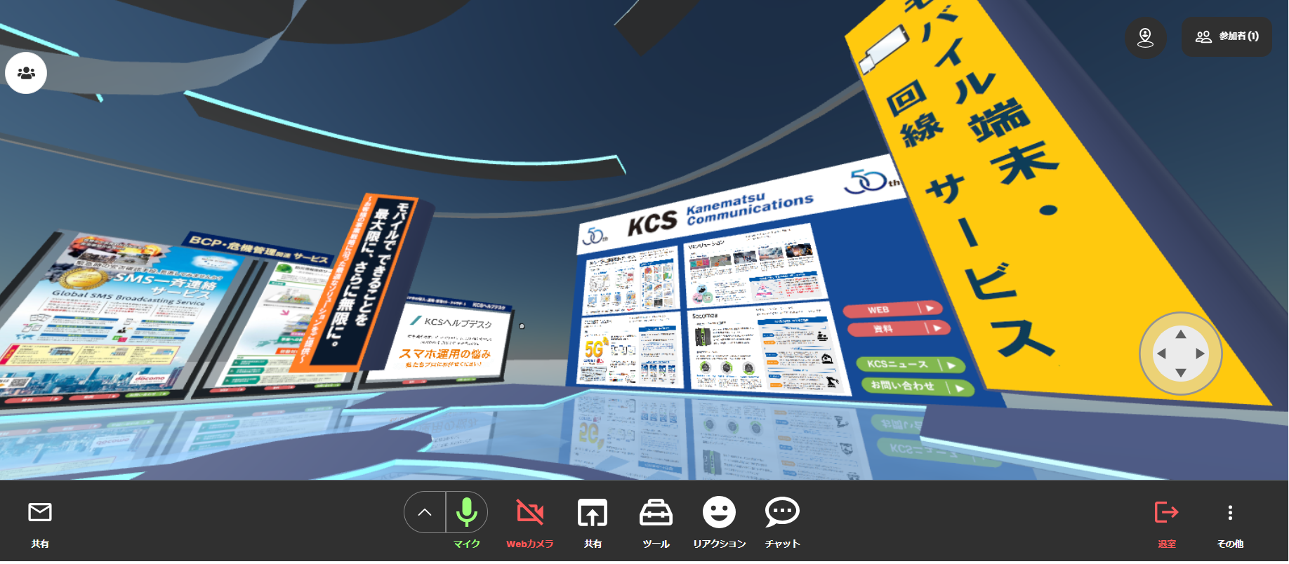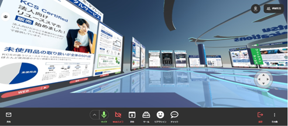 兼松コミュニケーションズの法人向け取扱い商材は、スマートフォンやタブレット、回線の提供にとどまらず、スマートフォンなどのキッティング(※注1)や、契約した回線を管理するソリューション、セキュリティツールに至るまで多岐にわたります。そのような状況の中、既存のコーポレートサイトへ掲載しただけは訪問者の方にラインアップを直観的に把握していただくことが難しくなっていたため、リアルな展示会のように鳥瞰的(ちょうかんてき)に目に触れることが可能なメタバースでのショールームを開設いたしました。