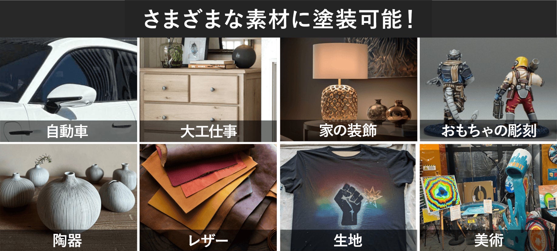 完全コードレスだから超小型のフィギュアから大きな壁まで、幅広くスプレーペイント可能です。どんなサイズでも理想的な仕上がりを実現します!