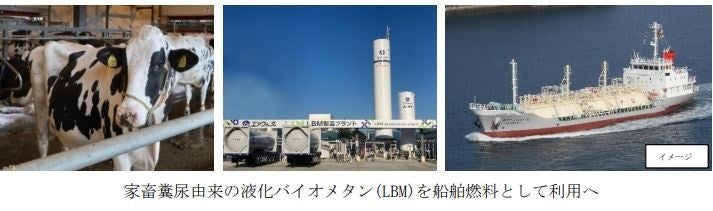 本共同検討では、エア・ウォーターが環境省に採択され推進するLBMの技術開発・実証事業(註2)の下、北海道十勝地方で家畜糞尿から製造するLBMを、商船三井グループの内航LNG燃料船で2023年度前半に使用することを目指し、両社で船陸双方の既存設備で問題なく輸送・供給・使用できることを確認します。なお、LBMを舶用燃料として利用することは、国内初(註3)の取り組みとなります。