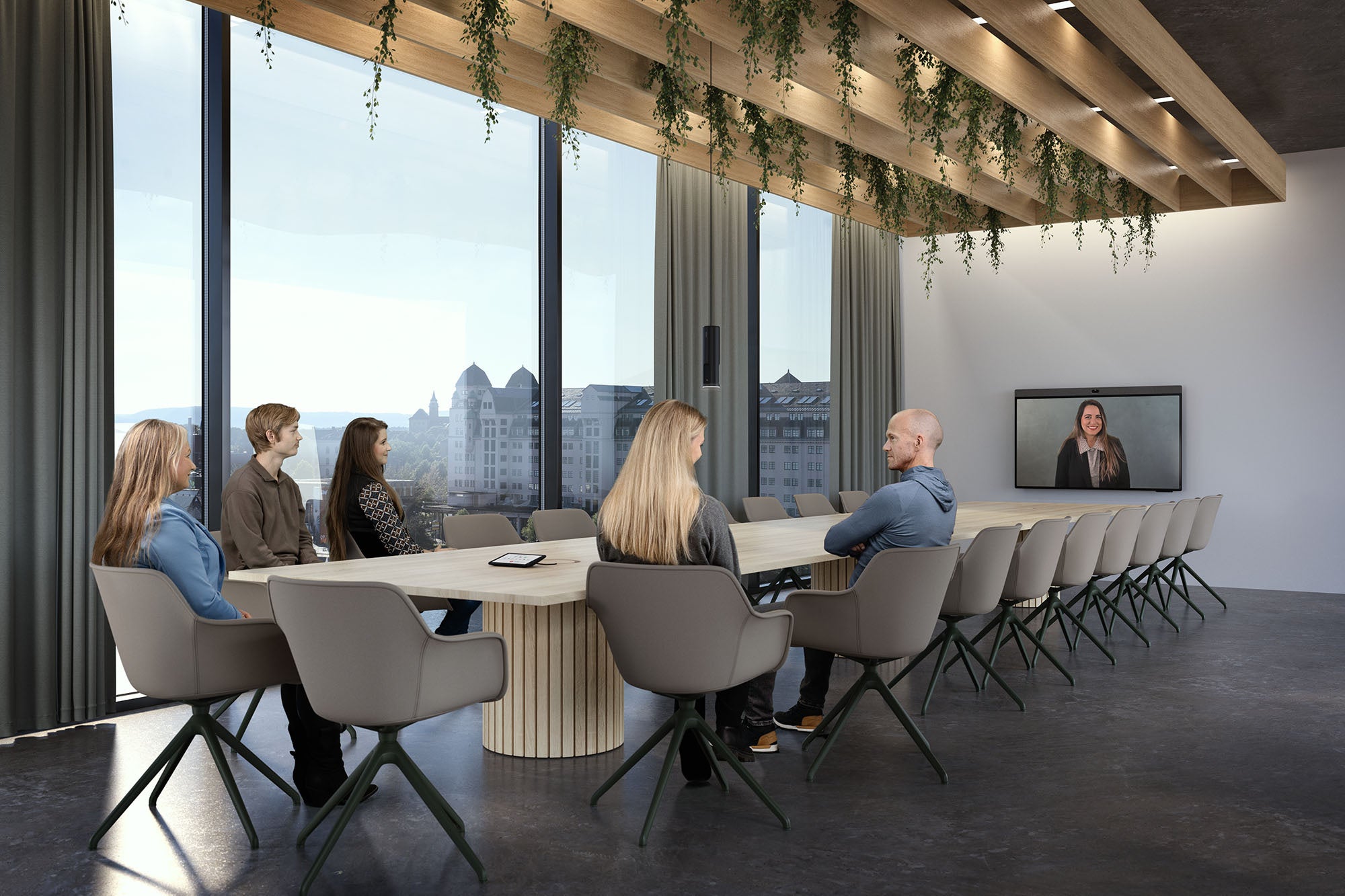 Neat Symmetry:会議室側の参加者を一人ひとり認識し、クローズアップして追尾するインテリジェントな画像処理により、リモート側から参加者の表情やジェスチャーなど非言語コミュニケーションまで含めた、より臨場感のあるオンラインコミュニケーションを実現