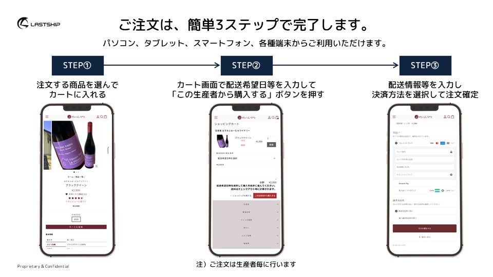 - 特徴4:日本ワインに特化した使いやすいUI、ご注文は簡単3ステップで完了