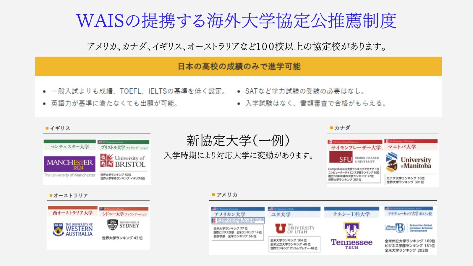 イギリス・カナダ・オーストラリアなど、世界100校への推薦留学