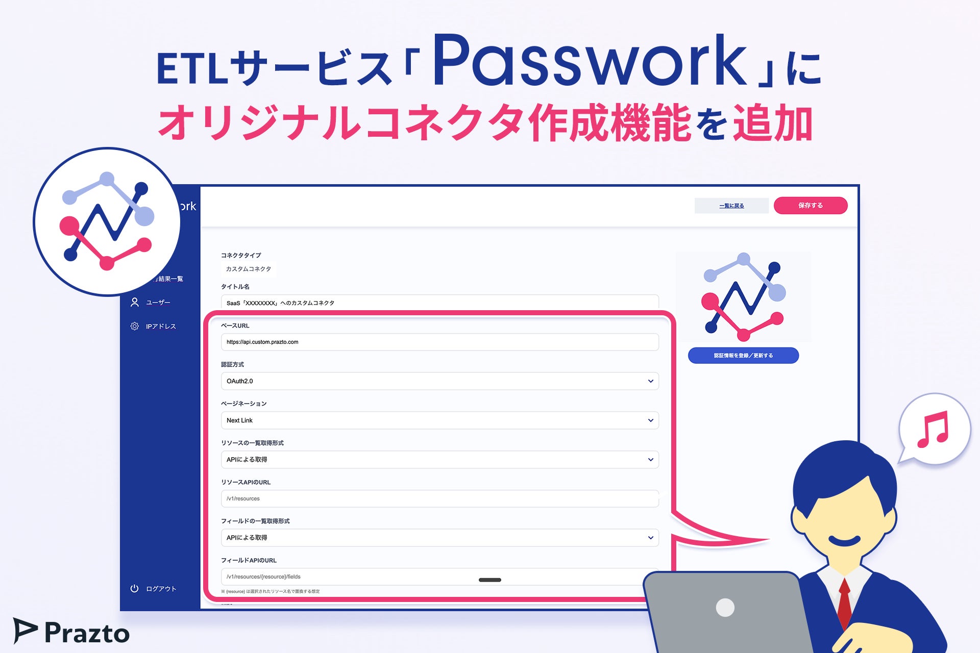 株式会社Prazto、ETLサービス「Passwork」にオリジナルコネクタ作成機能を追加