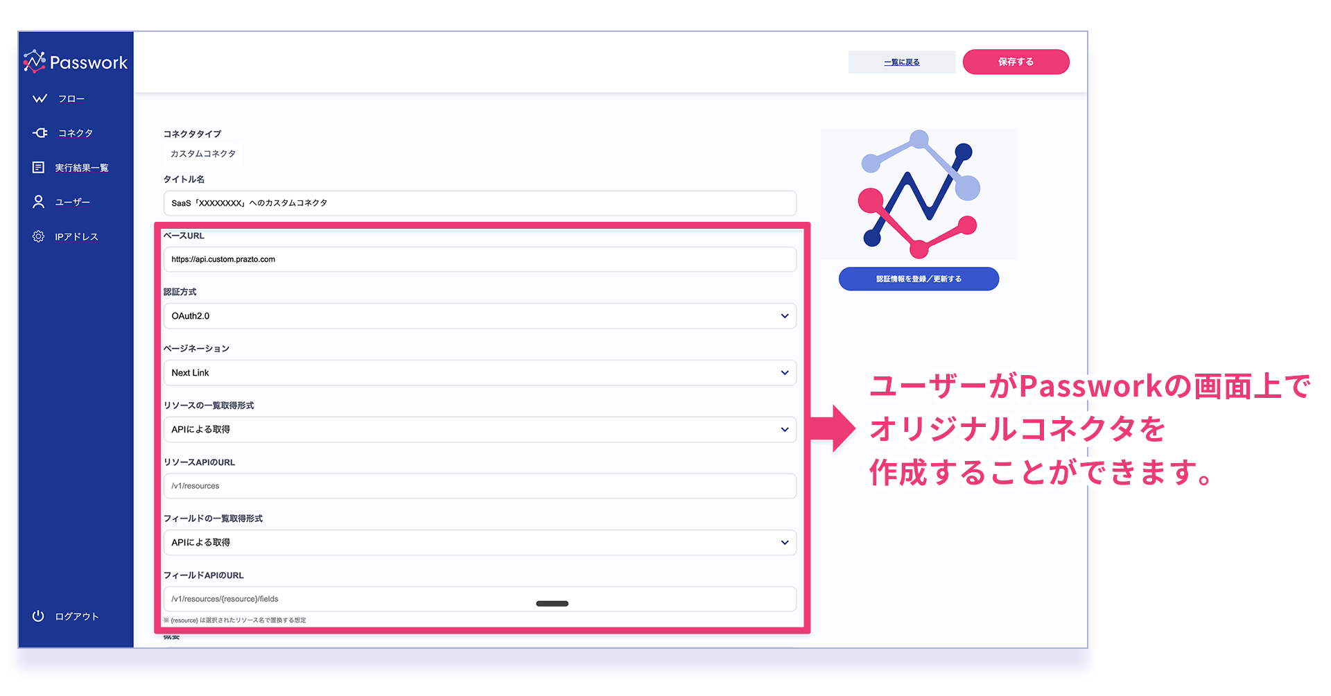 本機能により、Passworkの標準コネクタが対応していないサービスに対しても、ユーザー自身やパートナー企業様が独自のコネクタを作成し、接続することが可能になります。