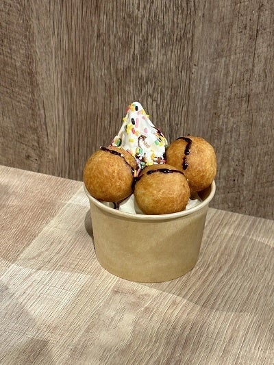 八天堂監修のカスタードソフトともちもちドーナツの相性が抜群です。