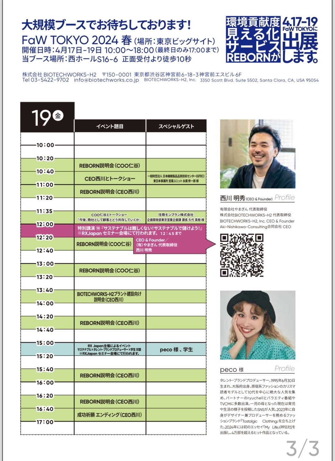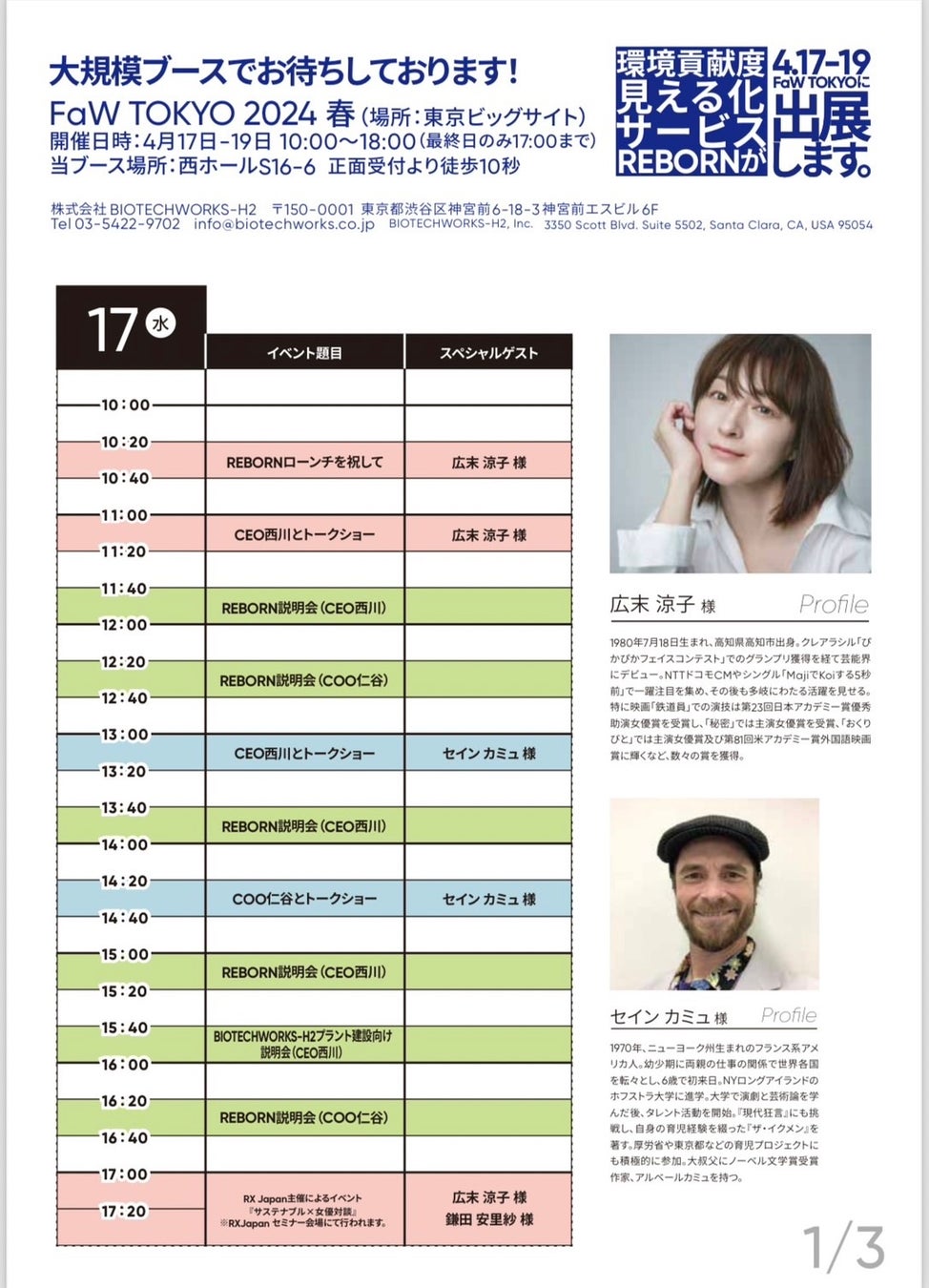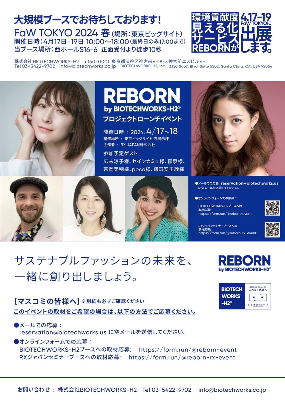 BIOTECHWORKS-H2、FaW TOKYO 2024で革新的な「REBORN」プロジェクトを発表