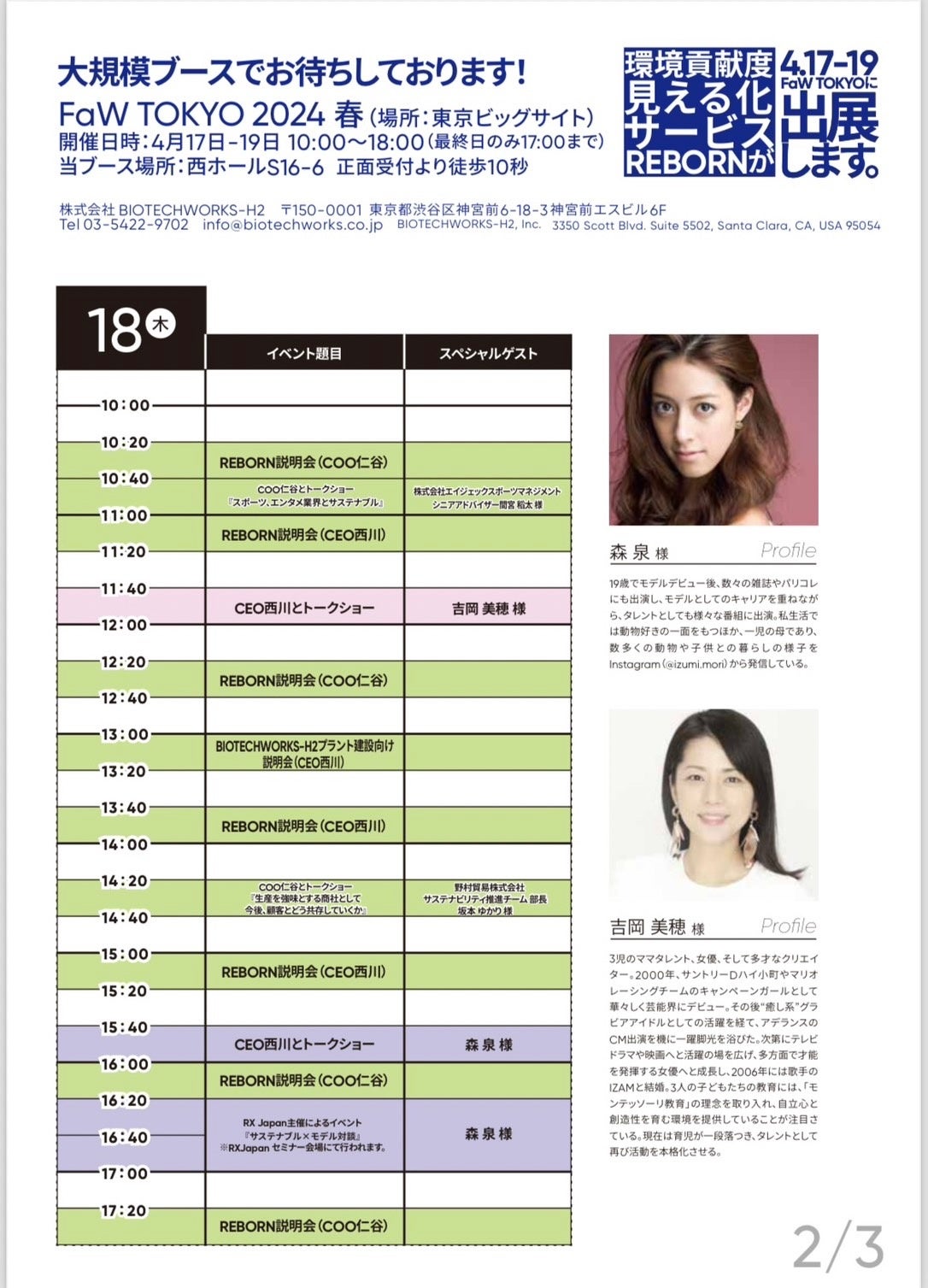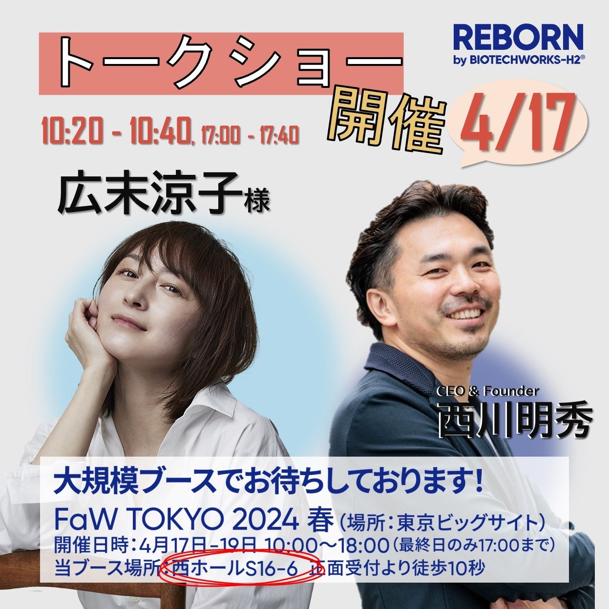 BIOTECHWORKS-H2、FaW TOKYO 2024で革新的な「REBORN」プロジェクトを発表。「廃棄物から水素」がさらに身近に!