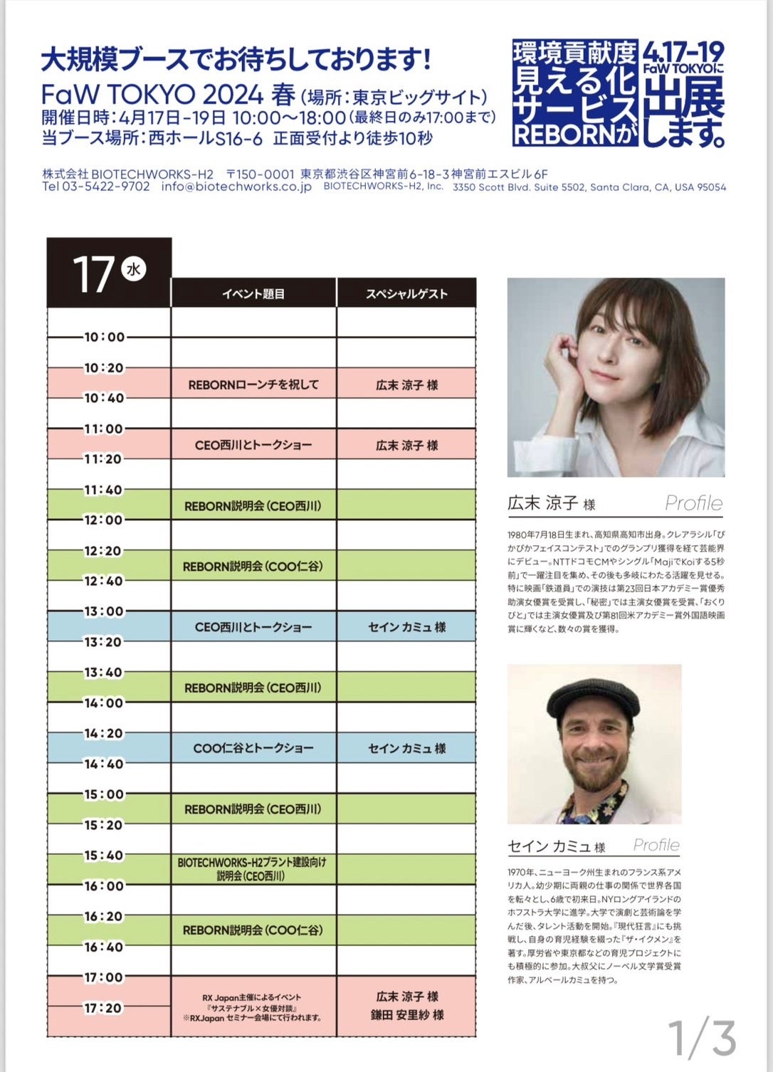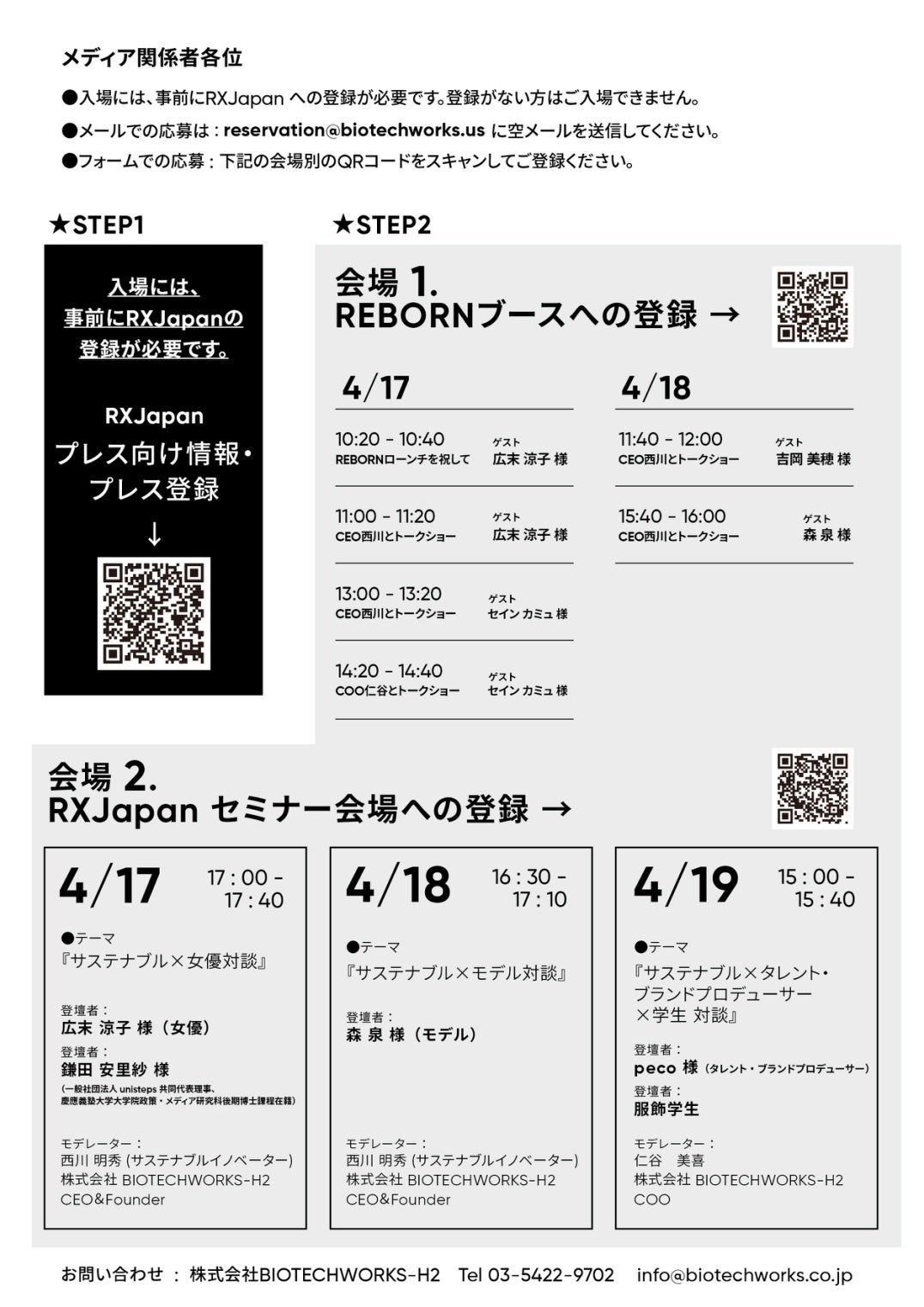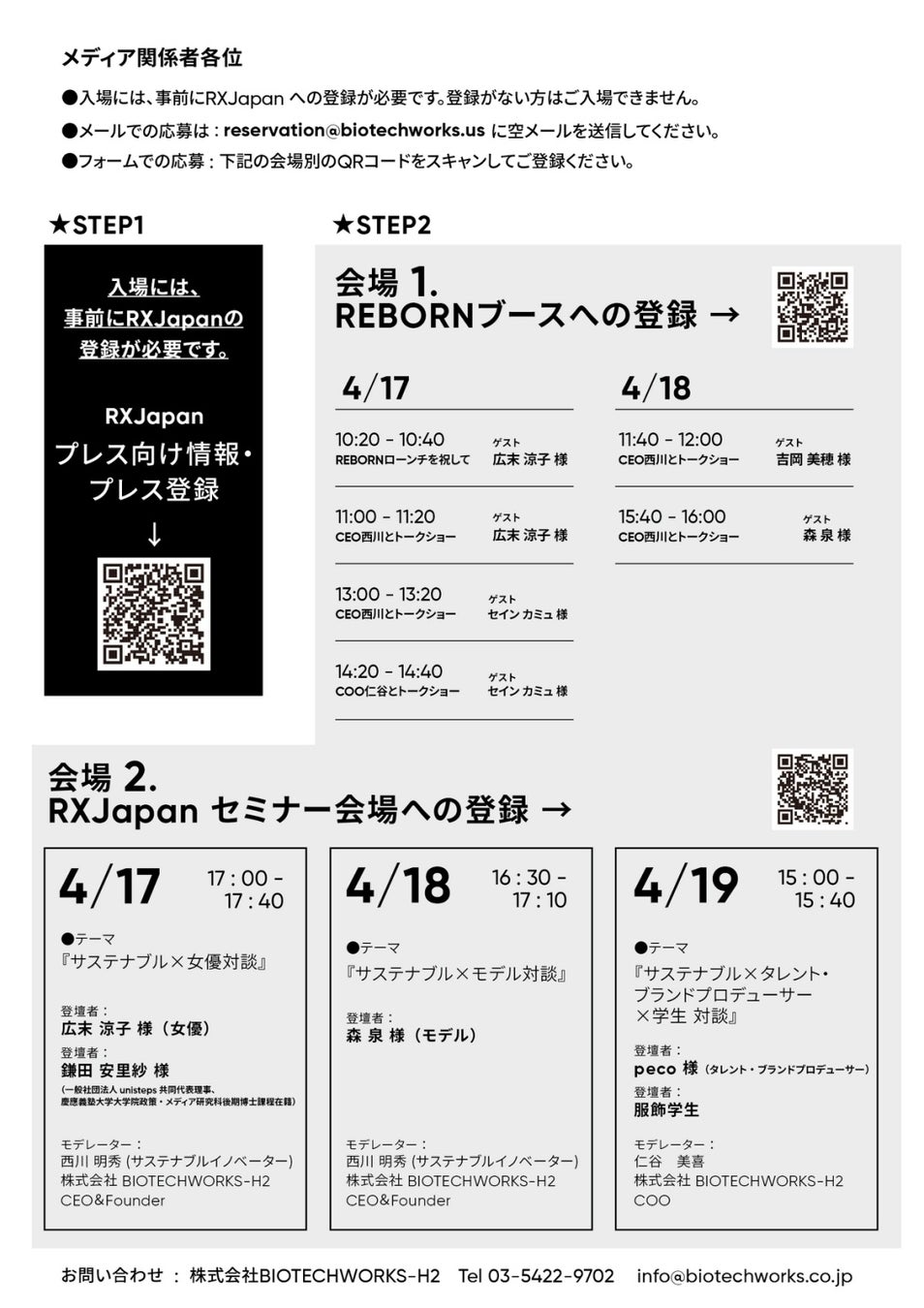 BIOTECHWORKS-H2ブースへの取材応募: https://form.run/@reborn-event