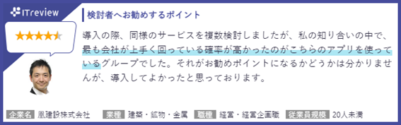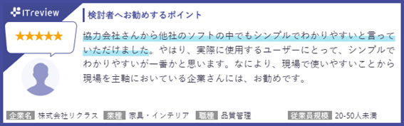 レビューサイト「ITreview」にて顧客満足度が非常に高い製品であると評価されました