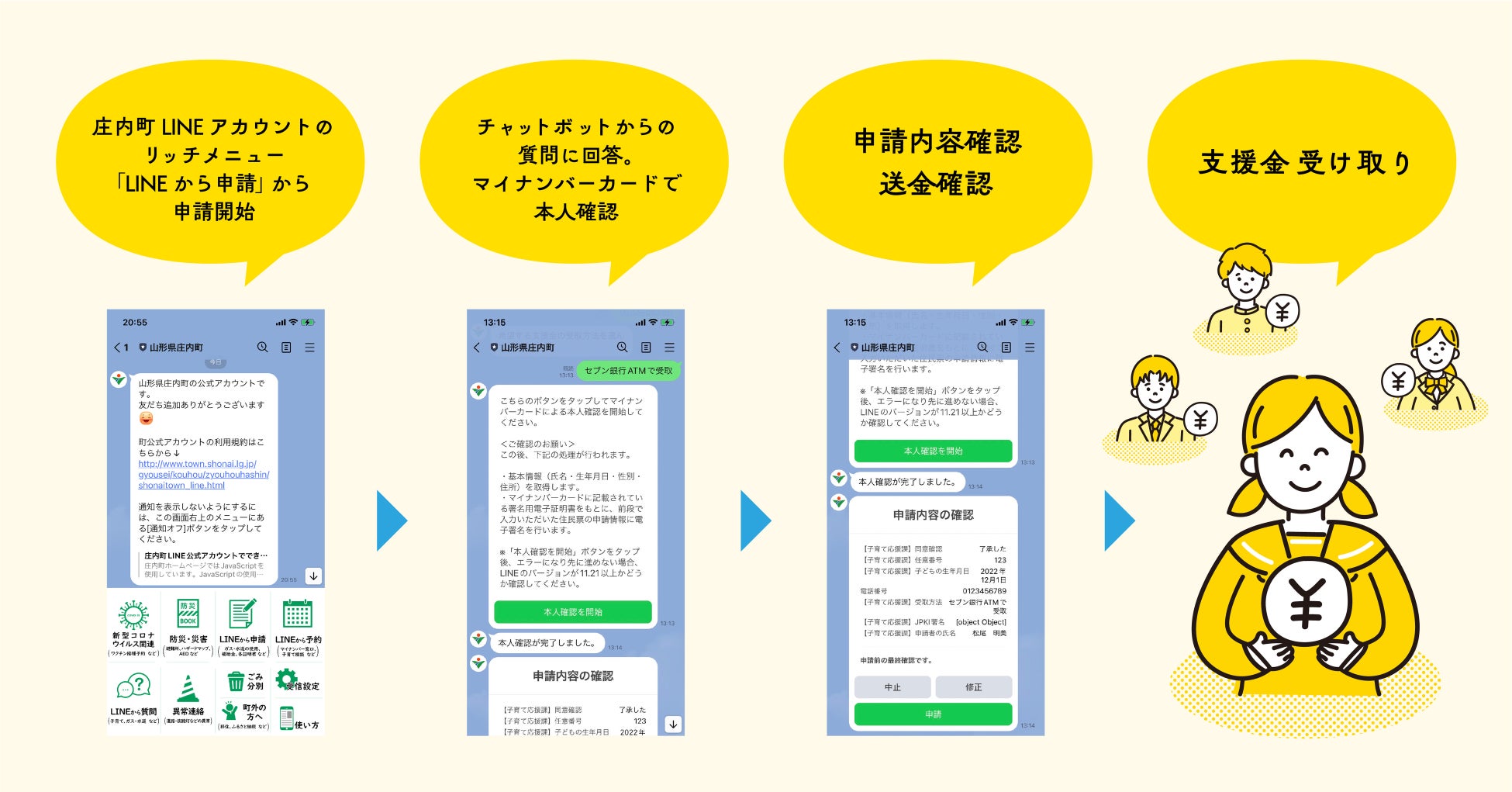 - 山形県庄内町「LINEで申請・セブン銀行ATMで受取」の特徴