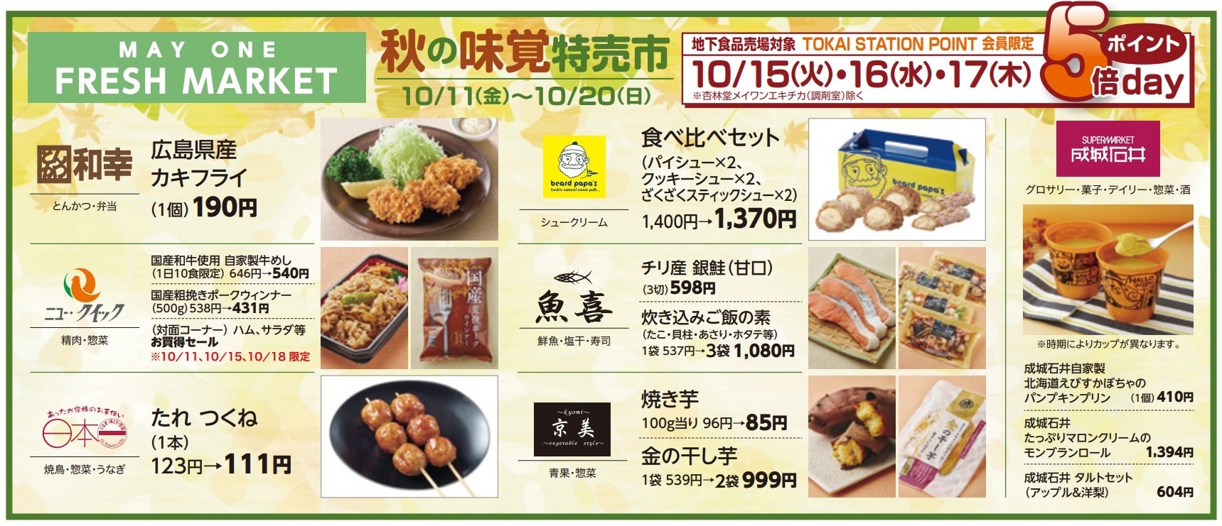 さらに、10/15(火)~17(木)は、TOKAI STATION POINT会員限定でポイント5倍デーとなります。