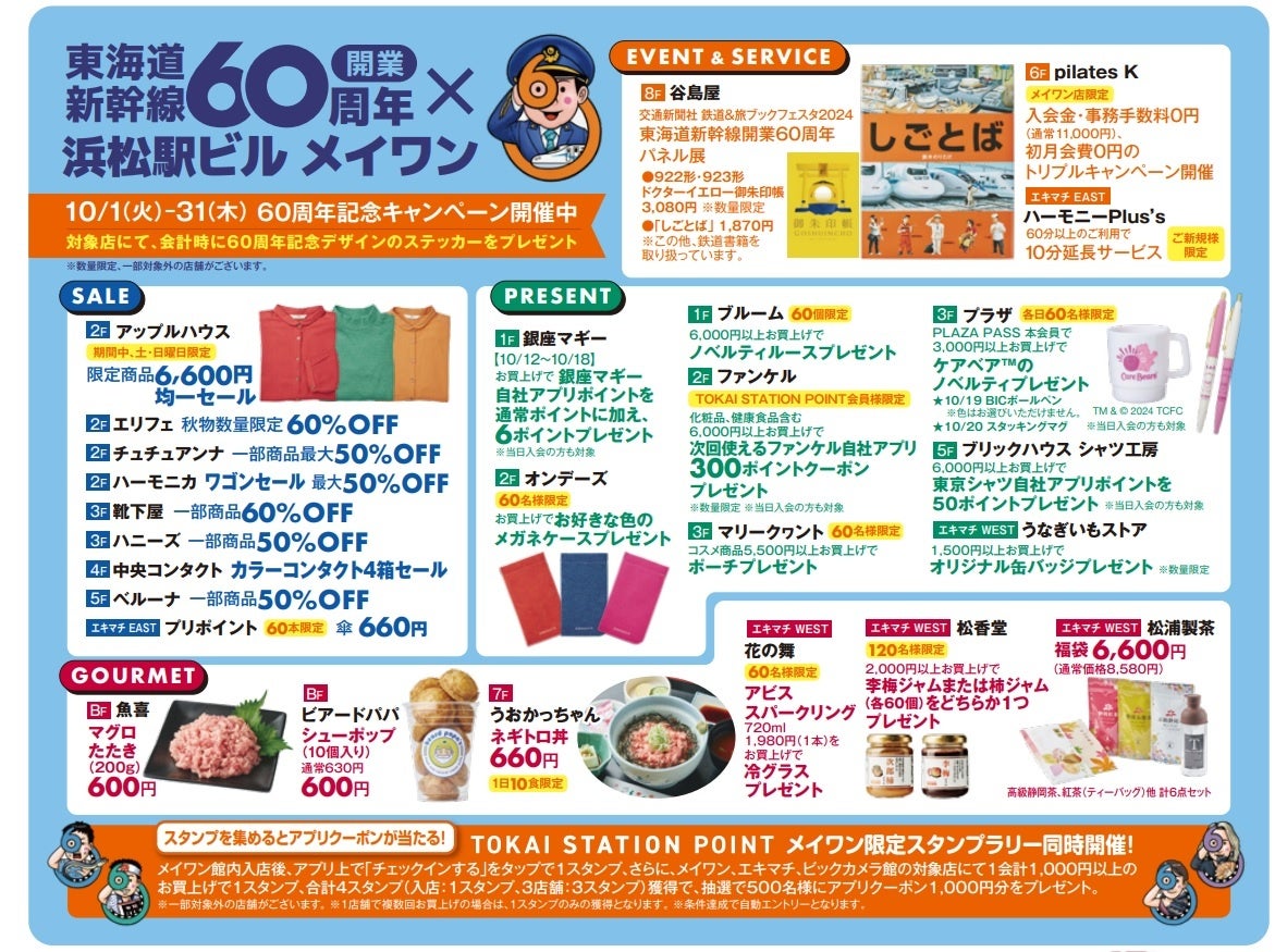■浜松駅ビルメイワンでは、10/1(火)から東海道新幹線開業60周年記念キャンペーンを実施します。