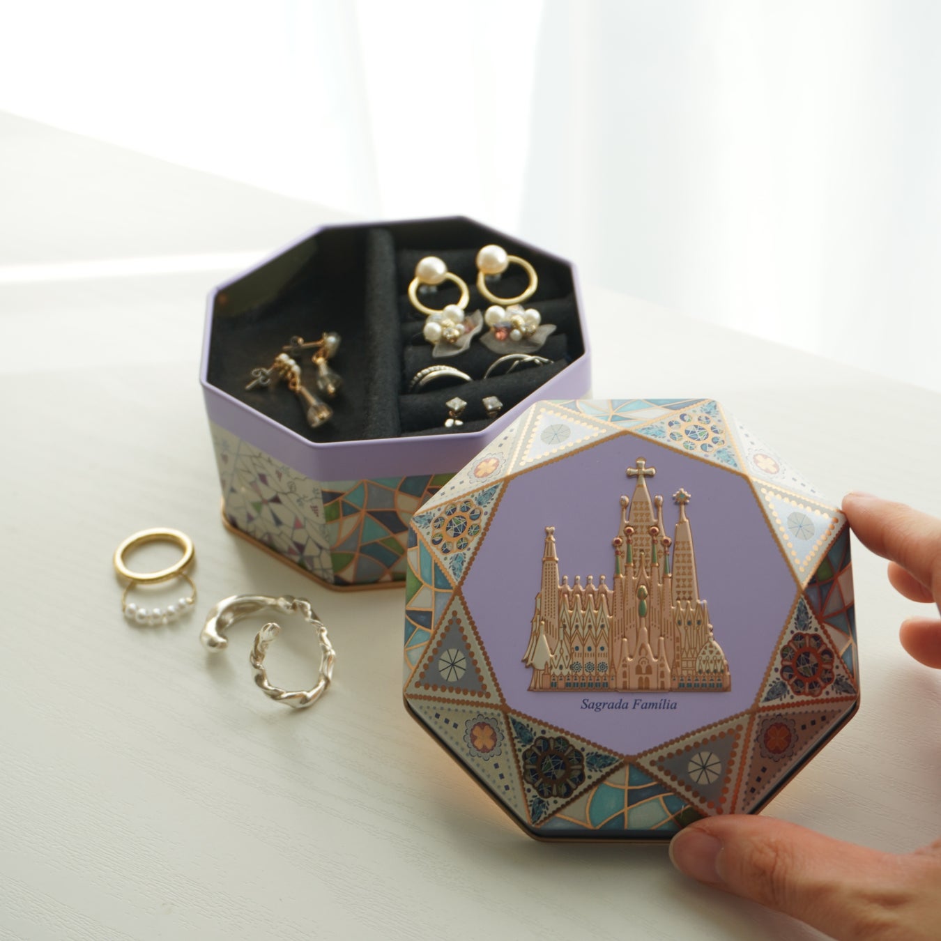 キラキラ輝くサグラダ・ファミリア缶は、缶をアレンジして"アクセサリーケース"にしたり"宝物"を収納するなど、お菓子を食べた後も様々なアフターユースが楽しめます。