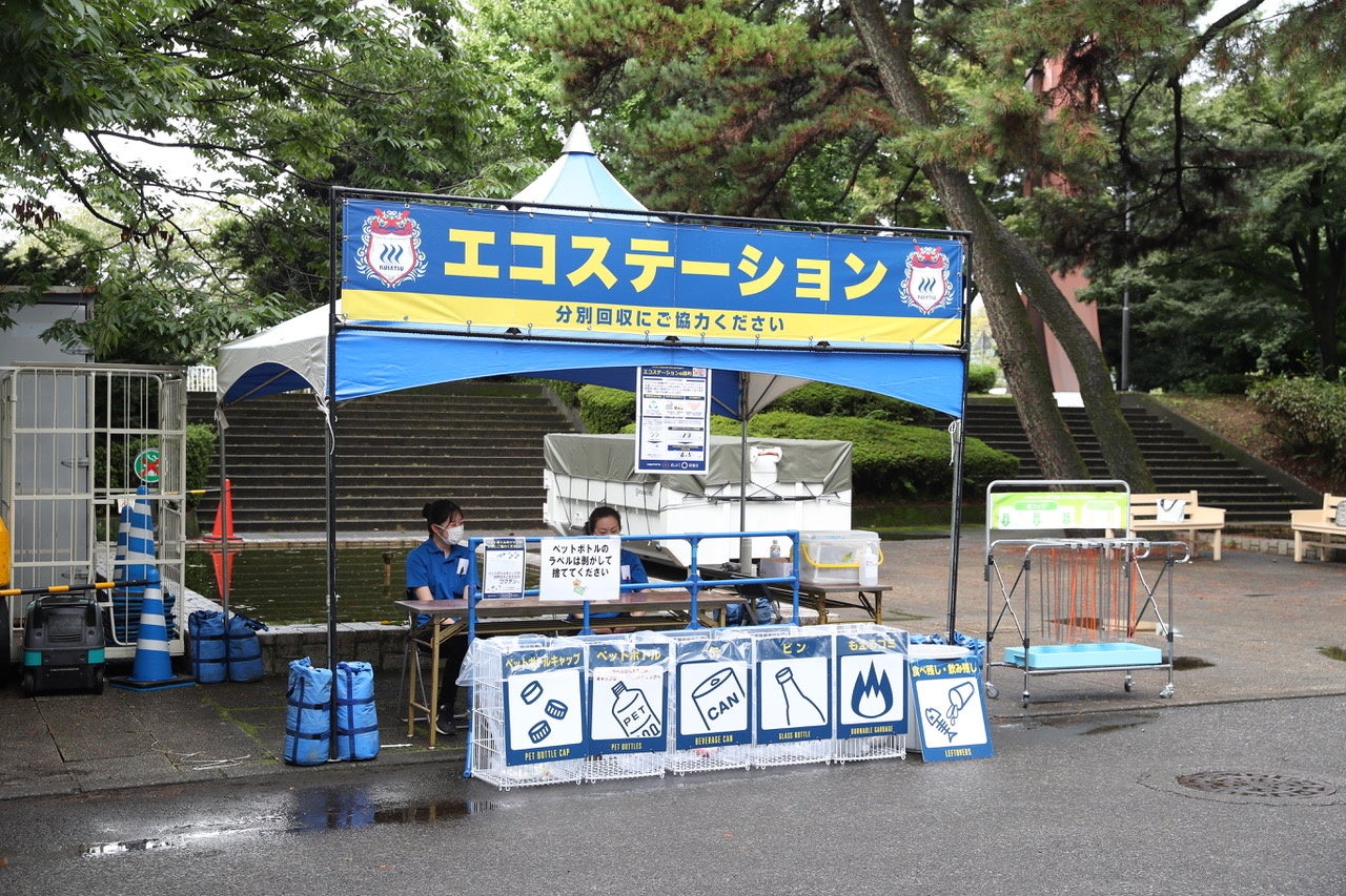 昨シーズンに引き続き、スタジアムで快適にお過ごしいただくとともに、ゴミの削減や資源の再利用、環境保全の活動を目的とし、エコステーションを設置いたします。引き続き、スタジアムでのゴミの分別のご協力をよろしくお願いいたします。