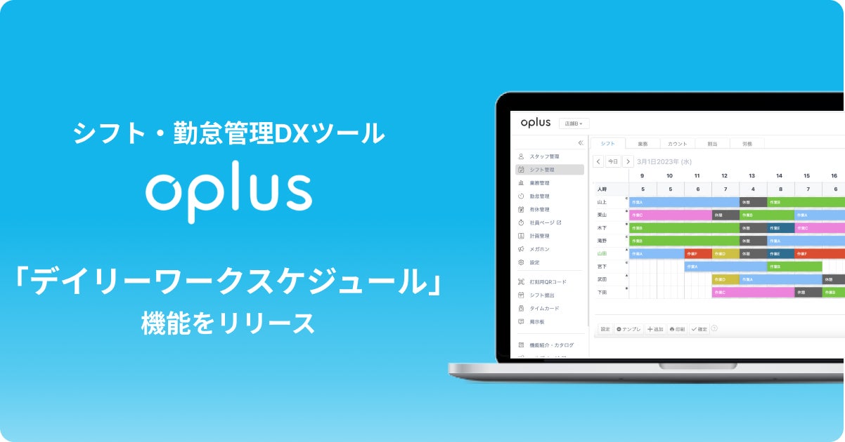 時間帯別の業務割り当てに対応!シフト管理DXサービス「oplus」が、デイリーワークスケジュール機能をリリース