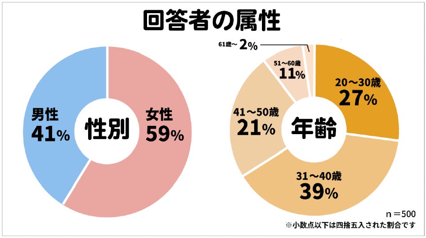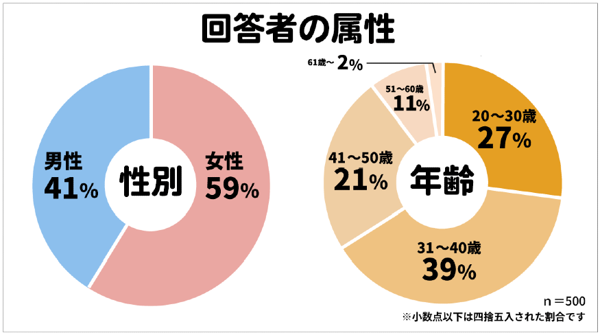 男性:41%、女性:59%と、女性の方が高い比率の回答となりました。年齢は31~40歳が39%と最も多い結果に。
