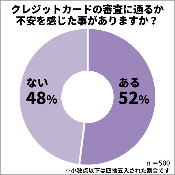 「クレジットカードの審査に通るか不安を感じたことがある」と回答した方は52%で、半数以上の方がクレジットカードの審査に通るのか不安に思っていた事が分かりました。